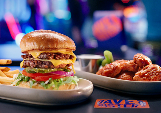 *EAT AND PLAY COMBO: Promotional. Eat & Play Combo. Limited Time only. Get a Dave’s Double Cheeseburger, Fish & Chips, Boneless Wings, Crispy Chicken Sandwich, Classic Goldfingers or Parmesan Garlic Chicken Caesar Salad plus a $10 Power Card. Promotional price starts at $19.99 per person but varies by location. Price may be subject to change at any time. Substitutions available for additional cost. Unlimited gameplay upgrade is valid from time of first gameplay swipe to store closure on the same day. Offer includes a 30-second lag between each gameplay swipe. Tickets earned on redemption games are capped at 1,500. Not valid on purple swipe games (VR, crane games, pushers, dance games or merchandising games) or orange/blue swipe amusements (Human Crane, the Arena, and Social Bays). Valid one per person. Tax and gratuity not included. Not valid with any other promotion. Dine-in only. Restrictions apply. See store for details. Void where prohibited.