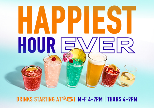 *HAPPY HOUR: $5 beverages including 22 oz. select domestic draft beer, glass of wine, Backwoods Blueberry Lemonade, Tres Tequila Rita, and D&B Long Island Tea are available during Happy Hour and Late-Night Happy Hour in select Dave & Buster’s locations. Time and offerings may also vary by location. See the store for details.
