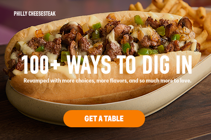 *$5 BITES IS NOT AVAILABLE AT THESE LOCATIONS: Orange, CA • Tulsa, OK • Columbus, OH •Oklahoma City, OK • Fresno, CA • Little Rock, AZ • Tucson, AZ •Rogers, AR • Louisville, KY • Corpus Christi, TX • Winston-Salem, NC • Wichita, KS • Port St. Lucie, FL • Lafayette, LA • Chattanooga, TN • Bakersfield, CA • Augusta, GA • Cary, NC • Lubbock, TX • Scranton, PA • Folsom, CA