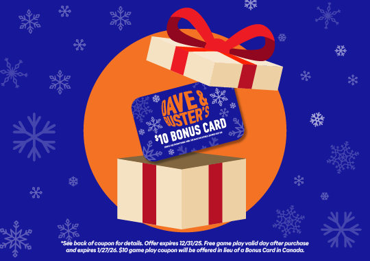 *5 Free Games Promotion not available at these Select Locations: Birmingham, AL • Barboursville, WV • Fort Meyers, FL • Gainesville, FL • Kentwood, MI • Greenville, SC • Sevierville, TN • Madison, WI • Memphis, TN • Myrtle Beach, SC • New Orleans, LA • Panama City, FL • Sioux Falls, SD • Albuquerque, NM • Salt Lake City, UT • Syracuse, NY • Oakville, ON • Vaughan, ON • Lombard, IL