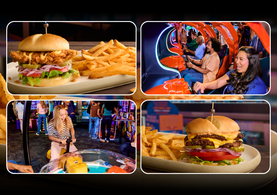 *Eat and Play Combo: Promotional. Eat & Play Combo. Limited Time only. Get a Dave’s Double Cheeseburger, Fish & Chips, Boneless Wings, Crispy Chicken Sandwich, Classic Goldfingers or Parmesan Garlic Chicken Cesar Salad plus a $10 Power Card. Promotional price starts at $19.99 per person but varies by location. Price may be subject to change at any time. Substitutions available for additional cost. Unlimited gameplay upgrade is valid for 90 minutes starting at time of first gameplay swipe. Offer includes a 30-second lag between each gameplay swipe. Tickets earned on redemption games are capped at 1,500. Not valid on purple swipe games (VR, crane games, pushers, dance games or merchandising games) or orange/blue swipe amusements (Human Crane, the Arena, and Social Bays). Valid one per person. Tax and gratuity not included. Not valid with any other promotion. Dine-in only. Restrictions apply. See store for details. Void where prohibited.