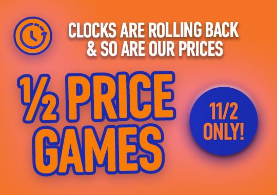 *5 Free Games Promotion not available at these Select Locations: Birmingham, AL • Barboursville, WV • Fort Meyers, FL • Gainesville, FL • Kentwood, MI • Greenville, SC • Sevierville, TN • Madison, WI • Memphis, TN • Myrtle Beach, SC • New Orleans, LA • Panama City, FL • Sioux Falls, SD • Albuquerque, NM • Salt Lake City, UT • Syracuse, NY • Oakville, ON • Vaughan, ON • Lombard, IL